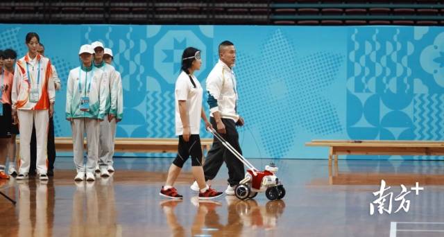 值得一提的是,赛场内,智能导盲犬也参与了赛事保障工作。该设备能精准识别各类障碍物,引导视障运动员从休息室安全顺畅抵达赛场,解决视障群体出行难题。