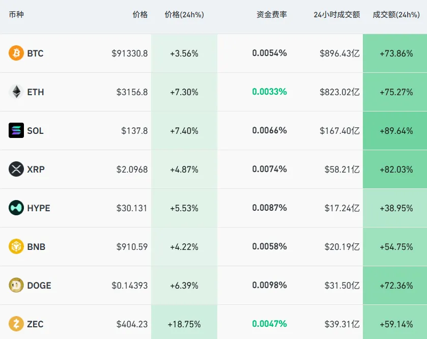 美股加密货币概念股普涨,Coinbase、Strategy一度涨超1%。与此同时,比特币短线走高,向上升破91000美元,截至22:48,过去24小时内上涨3.6%,以太坊、SOL均涨超7%。全市场超10万人被爆仓,爆仓总金额3.25亿美元,其中近2亿美元为空单爆仓。