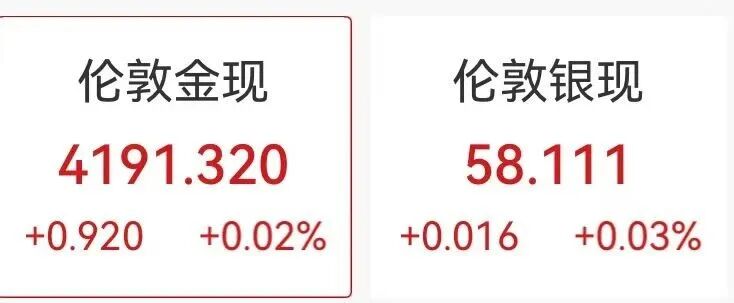 伦敦金现、伦敦银现小幅高开。