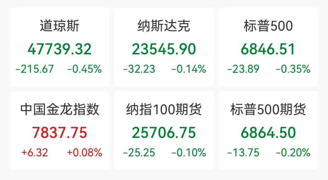 周一(12月8日), 美国三大股指小幅收跌,道指跌0.45%,标普500指数跌0.35%,纳指跌0.14%。