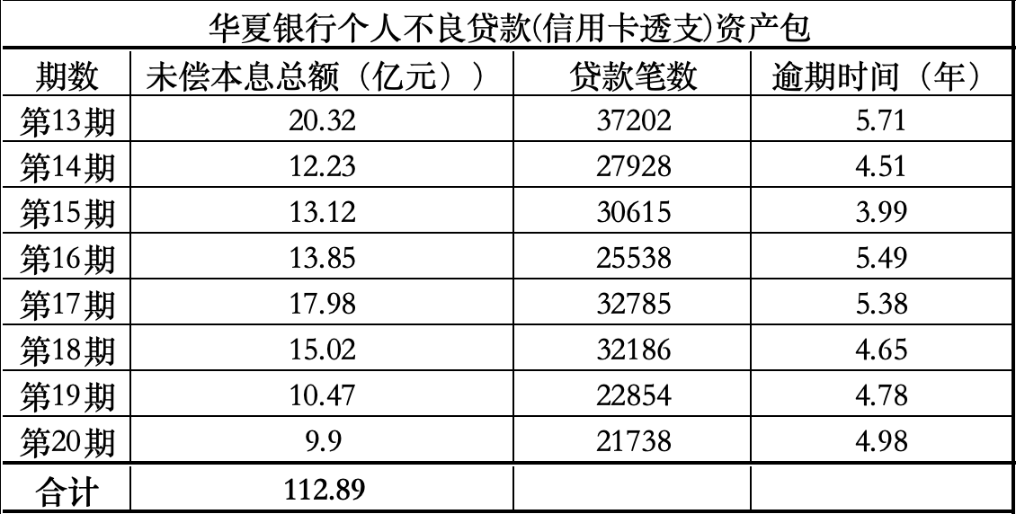 12月不良资产转让公告已破百,华夏银行百亿信用卡资产包寻买家