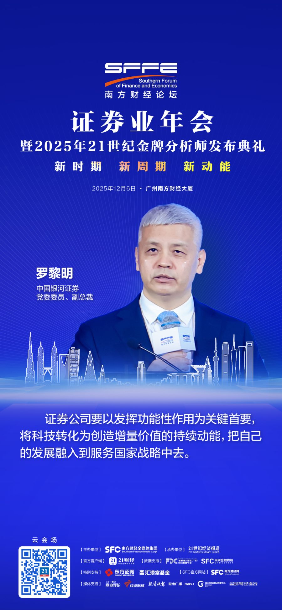 其中在6日的证券业年会上,中国银河证券党委委员、副总裁罗黎明发表了题为“金融报国践行高水平开放,熔铸枢纽服务全球化布局”的主题演讲,系统阐述了中国资本市场对外开放的新趋势、东盟地区在“十五五”期间的战略机遇,以及证券公司在服务企业全球化进程中可发挥的枢纽作用。