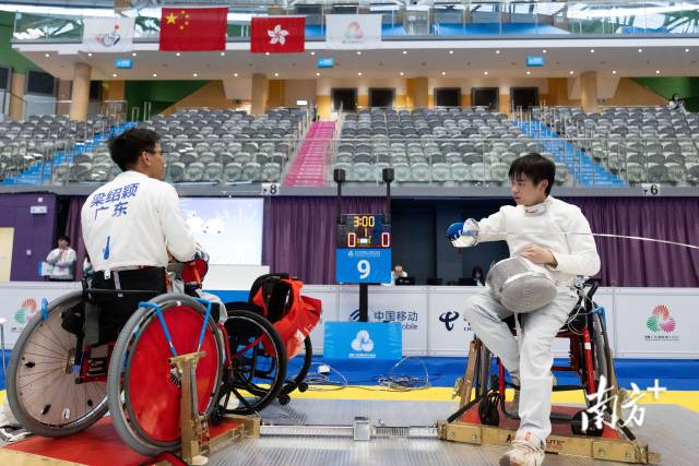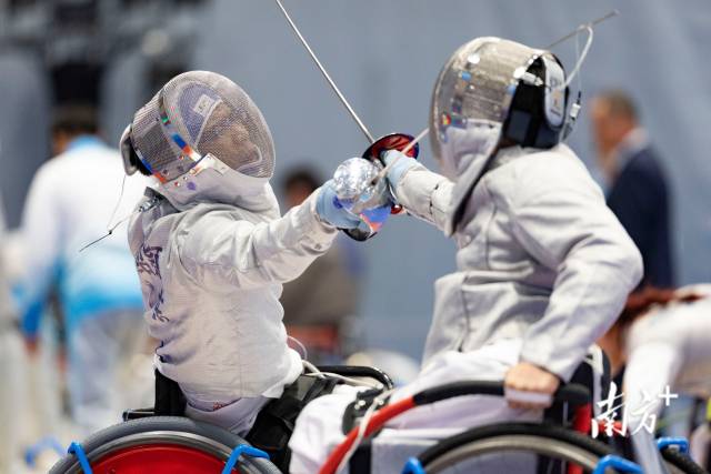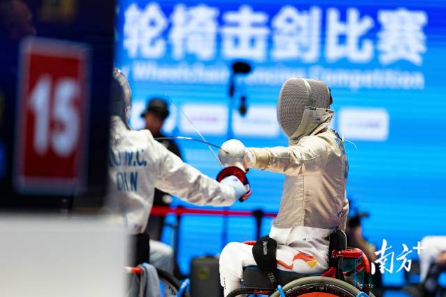 首日比赛,广东多名运动员登场。“我一直有个武侠梦,击剑是一个很酷的运动,我也想当一回剑客。当时看到广东组队招人,我就报名了,训练一年多,我的身体也更强壮了。”广东省轮椅击剑队年龄最大的队员梁绍颖说。