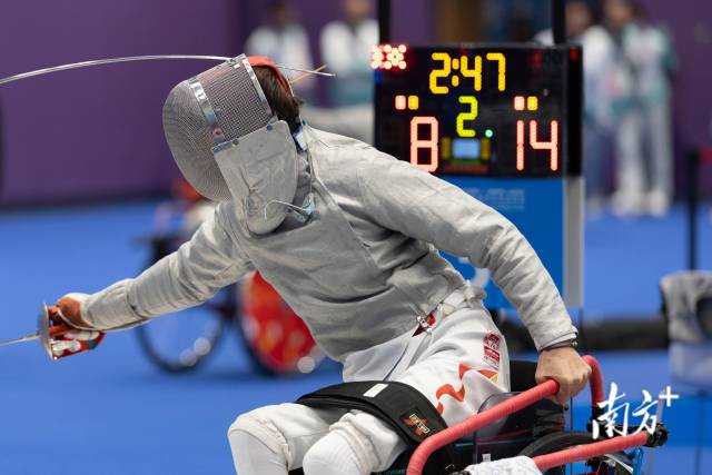 “队伍才组建1年多,所有队员都是从零基础开始训练,他们首日的表现很不错。”广东省轮椅击剑队教练龙杰说。出身体育世家的龙杰,15岁开启击剑生涯,多次在国内外赛事中斩获佳绩。在2024年巴黎残奥会后,龙杰受邀回到广州,担任广东省首个轮椅击剑队教练。执教短短一年,队伍从无到有,快速发展。