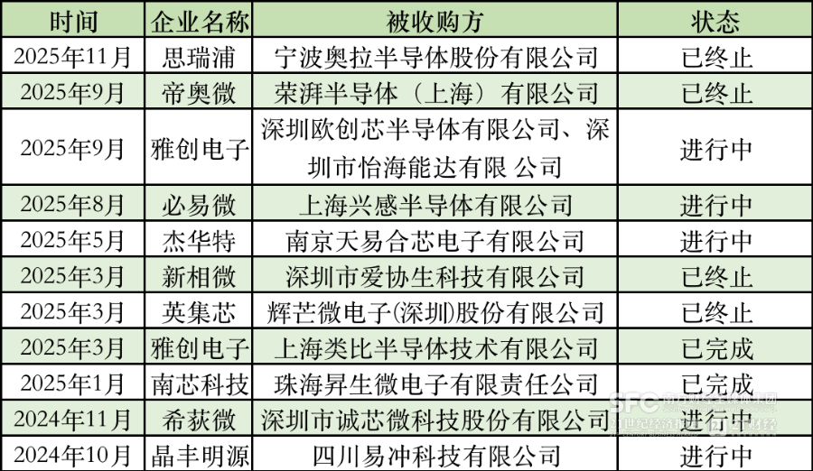 从思瑞浦发起对宁波奥拉半导体股份有限公司的并购到终止并购,仅隔半个月时间;帝奥微并购荣湃半导体(上海)有限公司,从发起到终止同样仅隔两个多月。