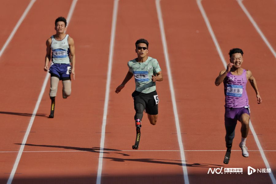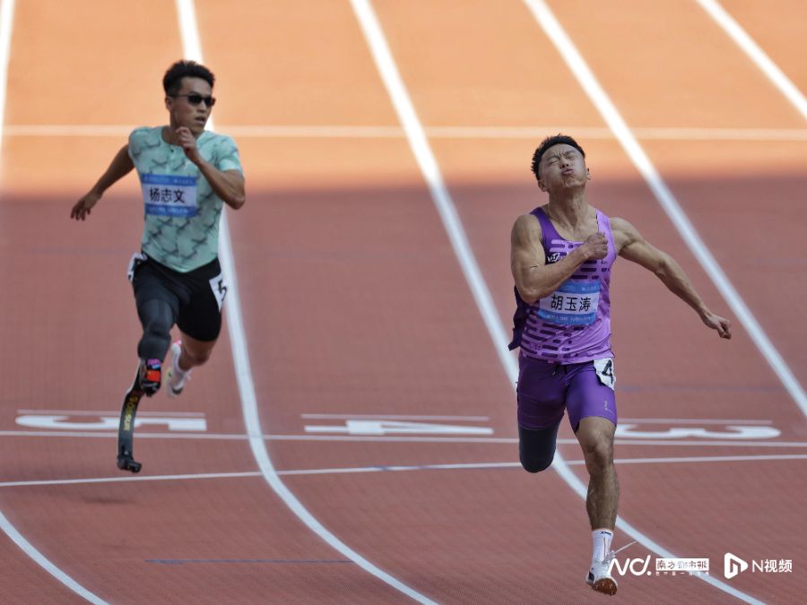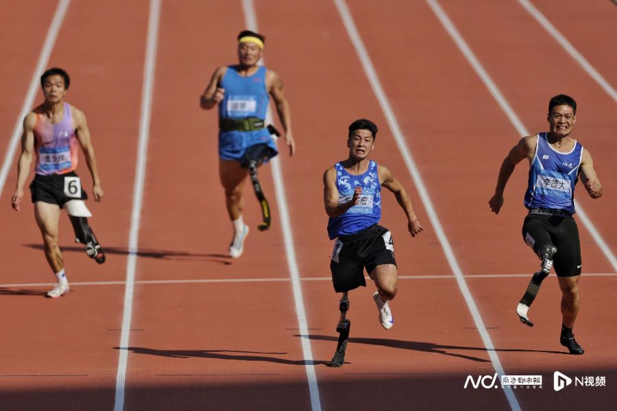男子100米T36级决赛,广东一团杨义飞夺冠。