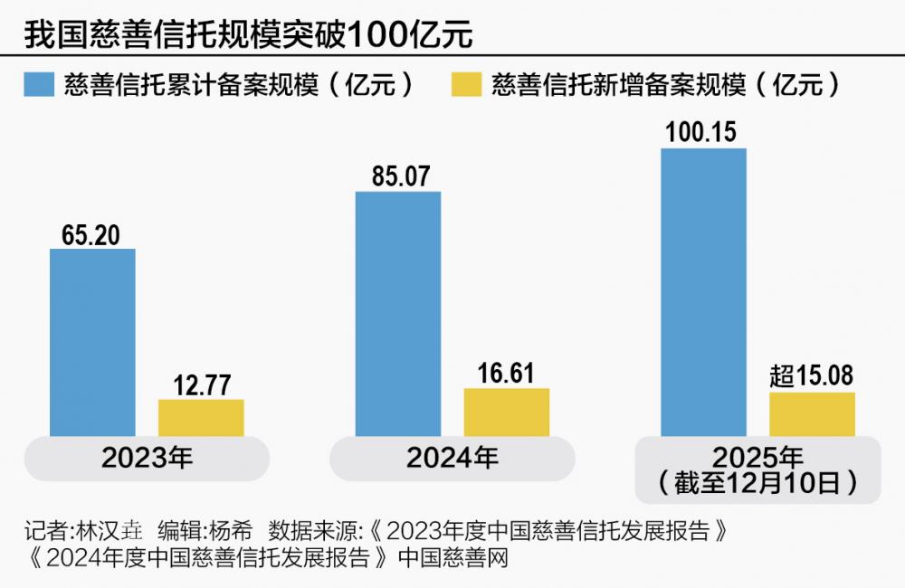 截至2025年12月10日,今年我国慈善信托新增备案规模已超15.08亿元。我国慈善信托备案数据已达2668条,财产总规模共100.15亿元。