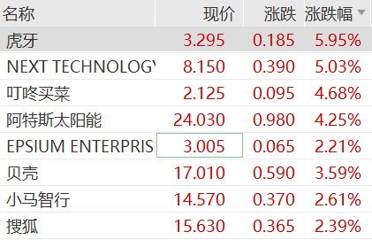 中概股多数上涨,纳斯达克中国金龙指数涨幅扩大。虎牙涨近6%,叮咚买菜、阿特斯太阳能涨超4%,阿里、小马智行涨约2.5%。阿里巴巴盘前一度直线拉升,据财联社报道,Meta使用阿里千问优化其最新AI模型。