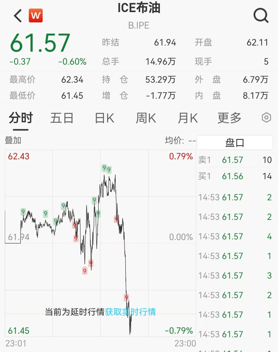 国际油价直线跳水,截至22:40左右,WTI原油、ICE布油均跌约0.6%,今年以来累计下跌超17%。