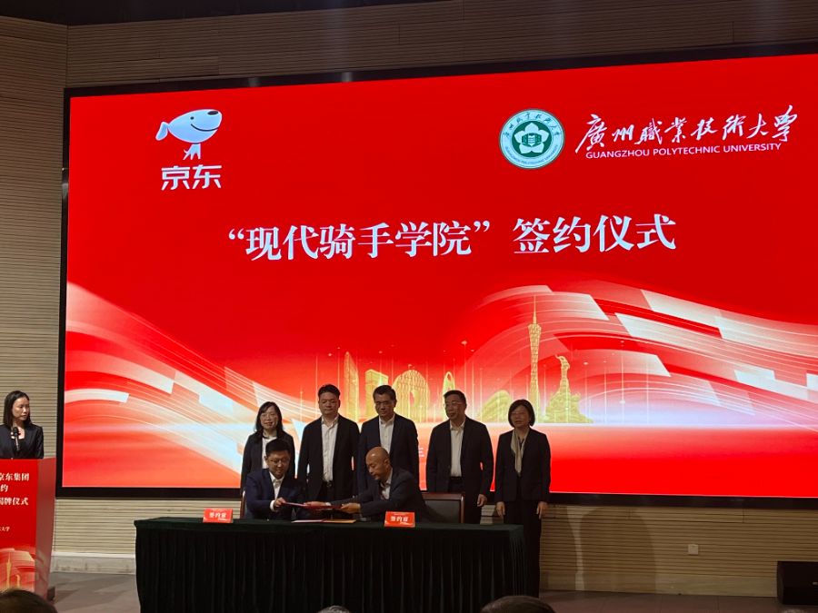 12月11日,广东省教育厅与京东集团战略合作协议签约暨现代骑手学院揭牌仪式在广州职业技术大学举行。