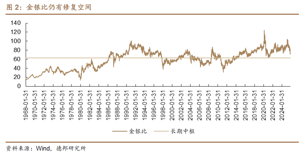 德邦证券表示:我们认为白银价格的持续上行或与金银比的回升相关。随着前期黄金价格持续上行,金银比被不断拉大,2025年6月金银比已扩大至100以上,而伴随黄金价格开始盘整,白银价格逐步启动修复。截至12月9日,金银比约为71.7,已较前期高点出现明显回落,但相比长期均值62.9仍有进一步修复空间。