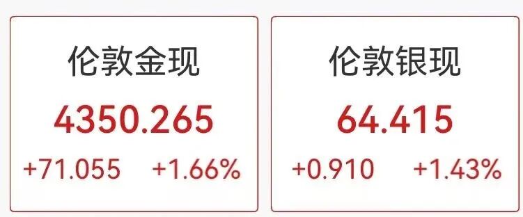 商品方面,金价银价双双拉升, 现货黄金向上触及4350美元,日内上涨1.66%, 银价一度涨至64.5美元创新高。据财联社, 高盛报告显示,尽管黄金价格屡创新高,美国私人投资者的黄金持有量并未显著增加;到2026年底,黄金价格将达到4900美元,并且还可能更高。