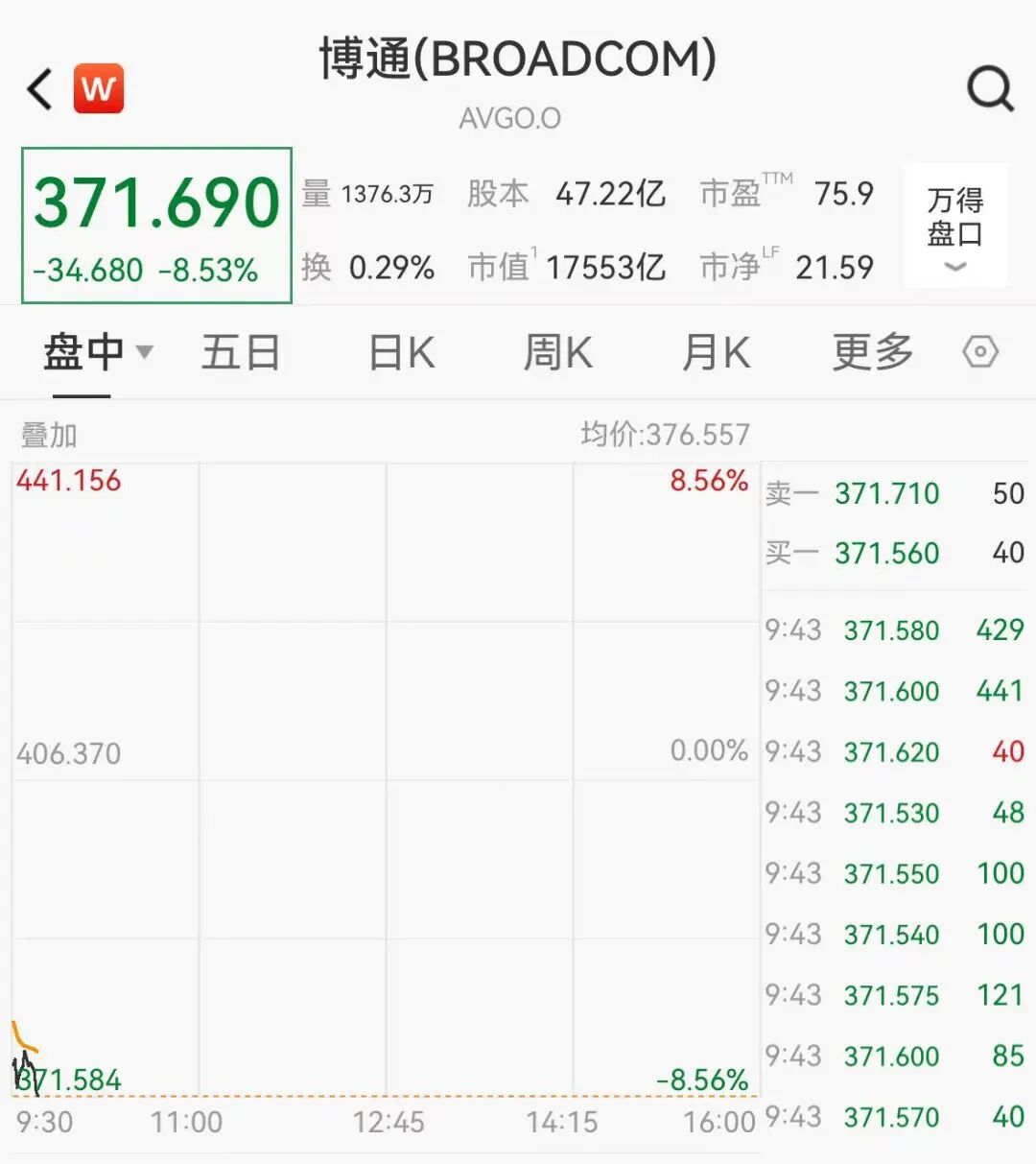 美国芯片巨头博通大跌超8%,消息面上,据证券时报,博通公布的人工智能(AI)市场销售前景未能满足投资者的高期望值,并预计2026财年第一财季毛利润率将因AI产品而下降。