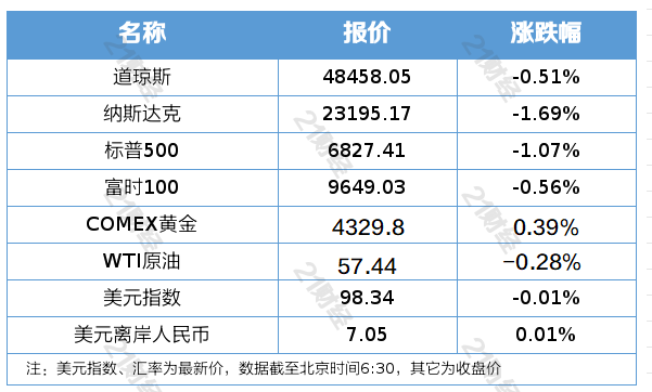 1、当地时间12月12日,美国三大股指全线收跌,道指跌0.51%报48458.05点,标普500指数跌1.07%报6827.41点,纳指跌1.69%报23195.17点。卡特彼勒跌超4%,英伟达跌逾3%,领跌道指。万得美国科技七巨头指数跌1.12%,亚马逊跌近2%,脸书跌逾1%。中概股多数下跌,阿特斯太阳能跌超10%,大全新能源跌逾6%。本周,道指涨1.05%,标普500指数跌0.63%,纳指跌1.62%。