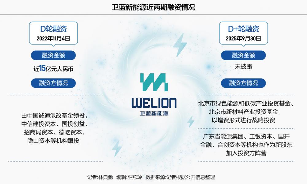 截至目前,卫蓝新能源共完成了六轮融资,其中2022年11月完成的D轮融资估值达到157亿元。2025年下半年,卫蓝新能源完成D+轮融资,北京市绿色能源和低碳产业投资基金、北京市新材料产业投资基金以增资形式战略投资卫蓝新能源。