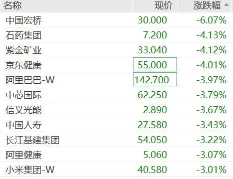 港股恒生指数下跌1.8%,恒生科技跌约2.5%。阿里巴巴、中芯国际港股跌近4%。