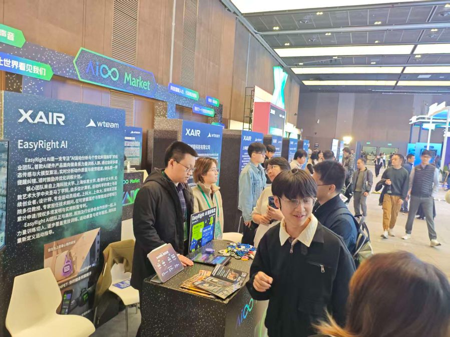 青年创客群体则为 C 端创新注入鲜活动力。嘉年华“AI00Market”展区汇聚了20位00后AI创业者,产品从通过训练视频提供专业指导的24小时“健身教练”EasyRight AI,到专为自媒体创作者打造的AI图文创作智能体01Agent。年轻创业者用创造力挖掘新兴消费需求。