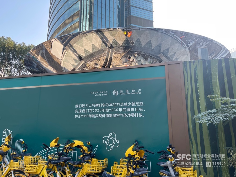 (扩建中的南京西路恒隆广场三期工程,唐韶葵/摄)