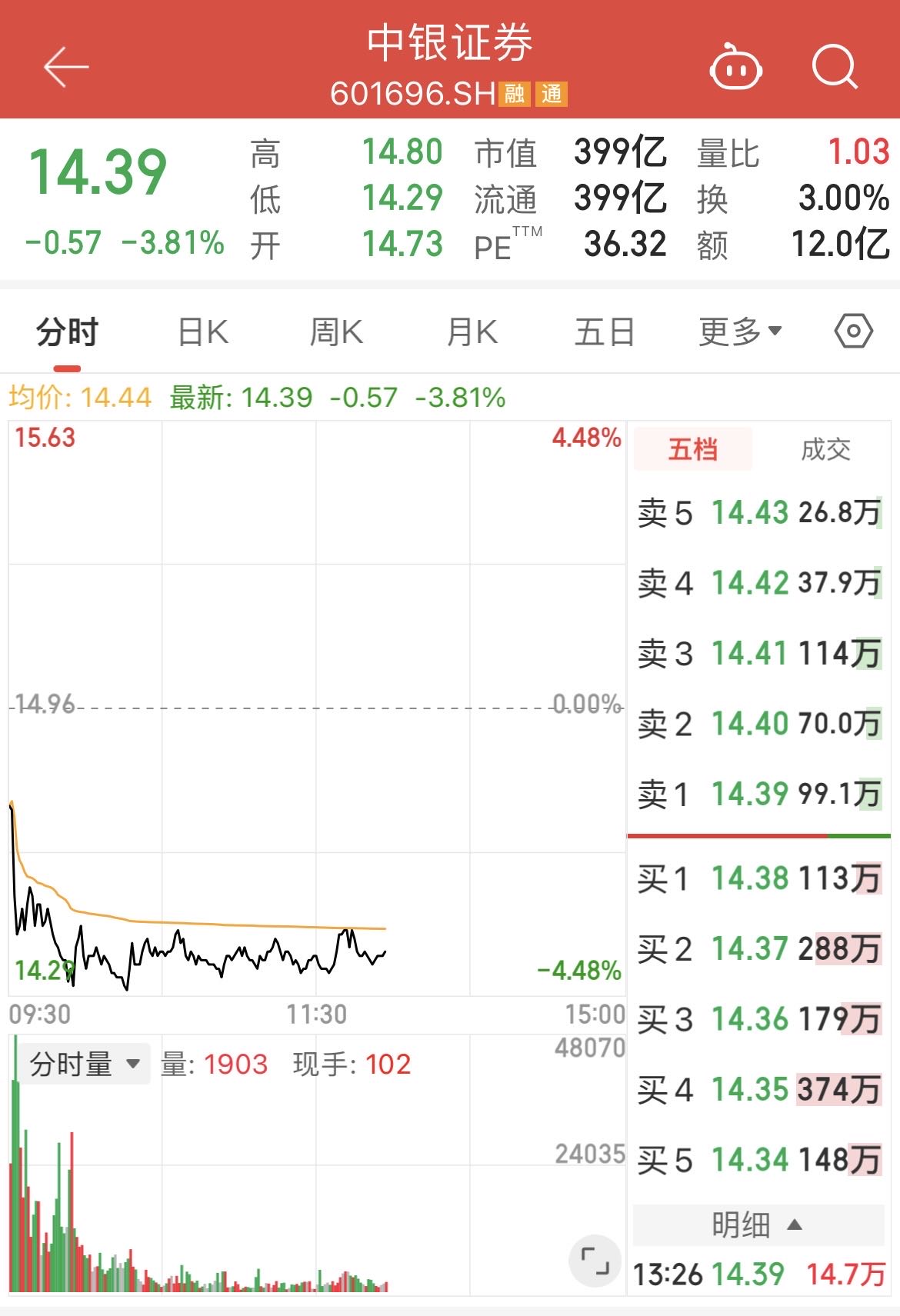 12月18日,中银证券(601696.SH)股价低开低走,盘中一度跌超4%,截至13:27报14.39元/股,跌幅3.81%,总市值跌破400亿元。消息面上,上海市通信管理局12月17日通报,因侵害用户权益行为,中银证券APP(SDK)被强制下架,引发市场对其合规管理能力的质疑。