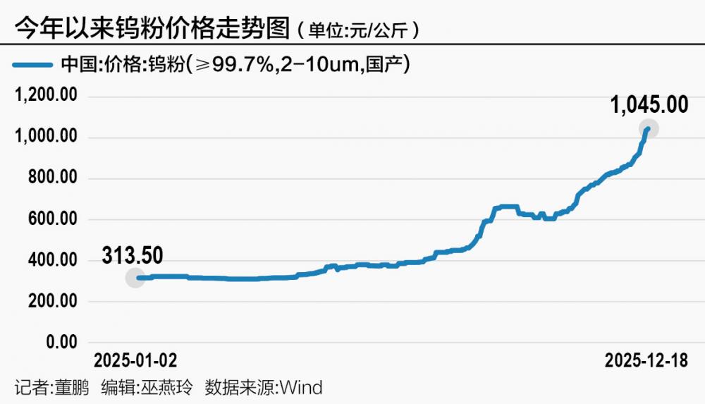 年内接近220%的涨幅,也使得钨粉成为今年表现最好的大宗商品之一,而近期的加速上涨则可能与临近年末的供给收缩与长单价格上调有关。