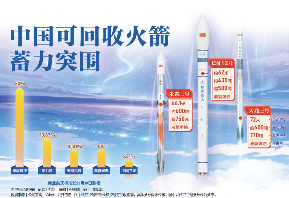 紧随朱雀三号之后,12月18日的最新进展显示,由中国航天科技集团八院抓总研制的长征十二号甲可重复使用运载火箭,计划于本月中下旬在酒泉迎来首飞。当日,星辰科技、铂力特、天箭科技等商业航天概念股应声大涨。两大任务的密集衔接,可视作2025年中国商业航天最具标志性的进展,有望重塑市场规则。