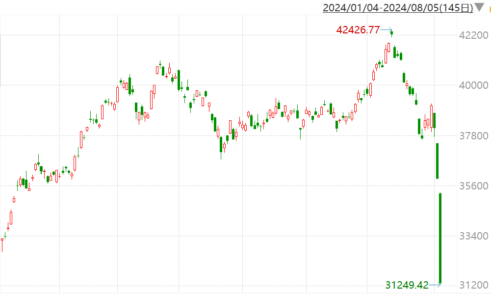 接下来的三个交易日(8月1日、8月2日、8月5日)日经225指数连续大跌,特别是8月5日,日经225指数大跌12.4%,一度熔断,创历史最大单日跌幅。