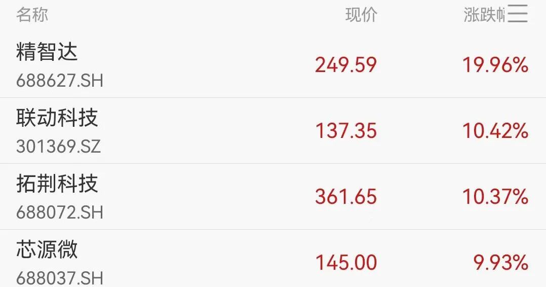 机器人概念大爆发,精智达涨超19%,首开股份、卧龙电驱等多股涨停。商业航天概念反复走强,神剑股份回封涨停。