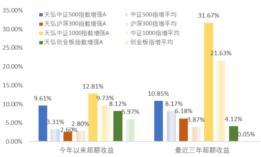 从业绩看,天弘指数增强产品的成绩单亮眼。