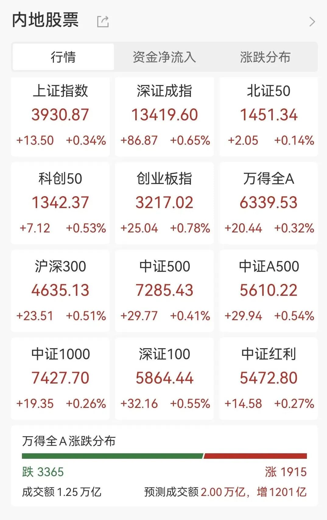 12月23日,A股早盘震荡拉升,截至收盘,沪指涨0.34%,深成指涨0.65%,创业板指涨0.78%。沪深两市半日成交额1.25万亿,较上个交易日放量523亿。盘面上热点快速轮动,全市场超3300只个股下跌。