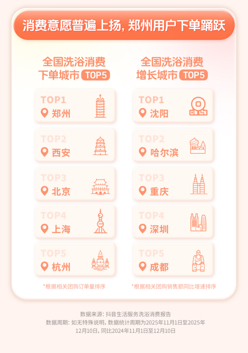 抖音生活服务:洗浴相关团购同比涨38%,冬季十大洗浴消费城市出炉