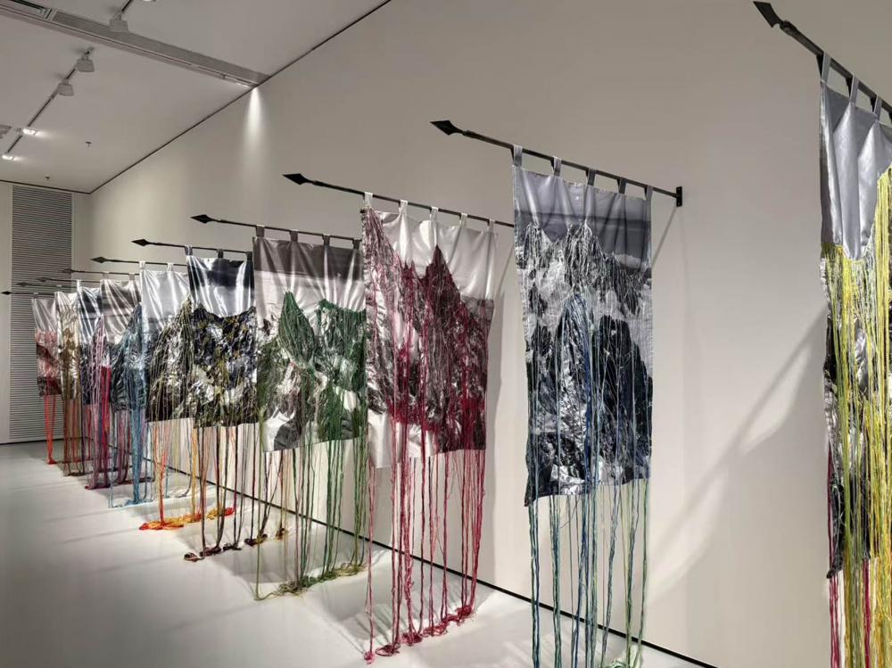 步入广东美术馆新馆二楼展厅,观众首先会被一种严谨而理性的氛围所包裹。这里没有传统摄影展中常见的大幅风景或人物肖像,取而代之的是各种混合媒介作品——织物上交织的影像、金属板上蚀刻的光影、摄影拼贴和喷墨打印等,墙面上还配以严谨而学术化的介绍文字。这或许正是本届三年展给观者的第一个提示:它邀请你用的不止是眼睛,还需要用大脑以及整个身体与感知系统,去深入思考影像艺术的意义。