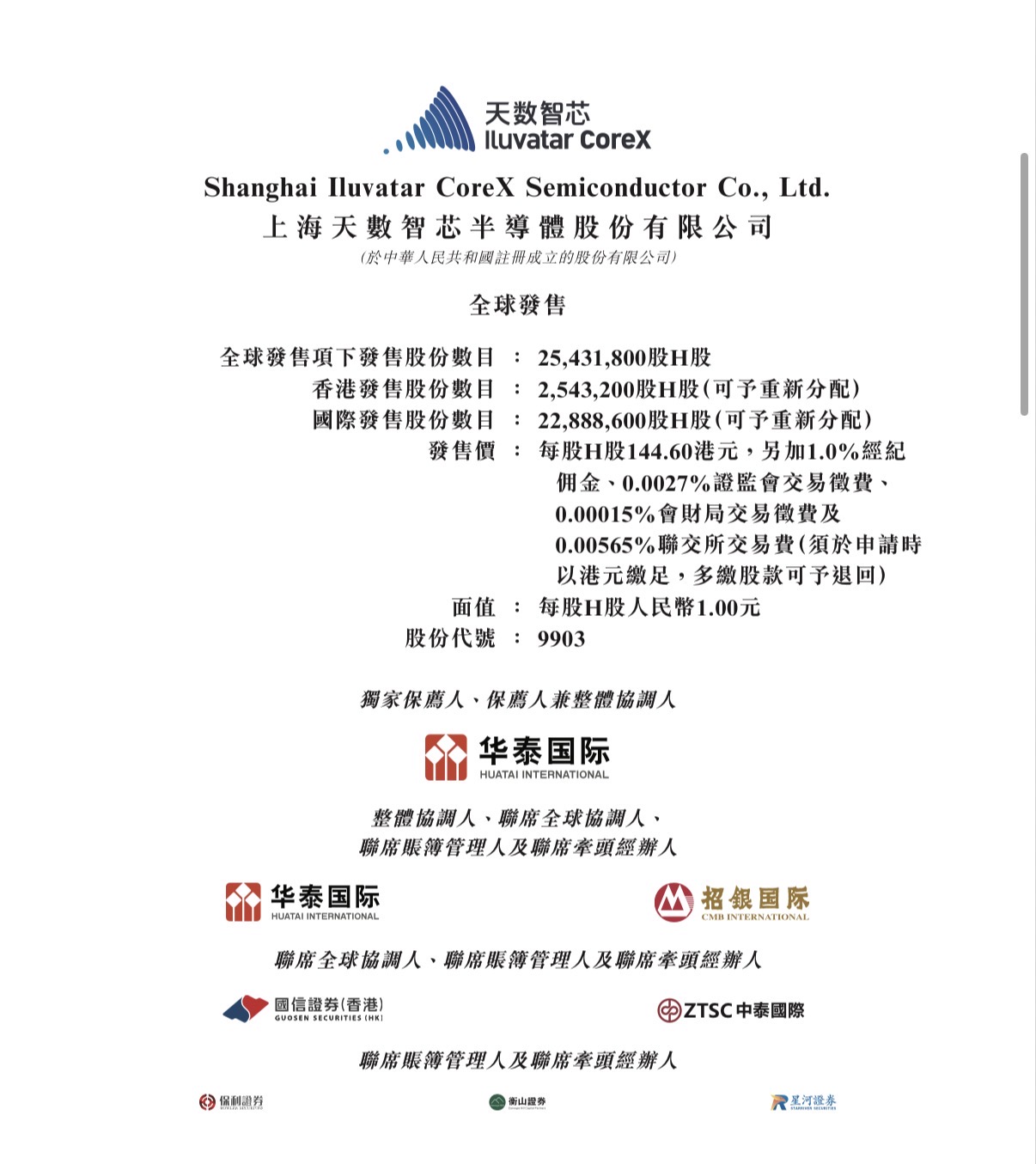 12月30日,GPU企业天数智芯正式启动公开招股,招股期截至2026年1月5日,并计划1月8日以股票代码“9903”在港交所上市。
