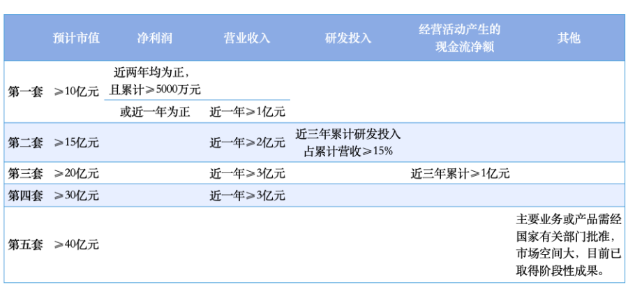 (科创板上市标准)