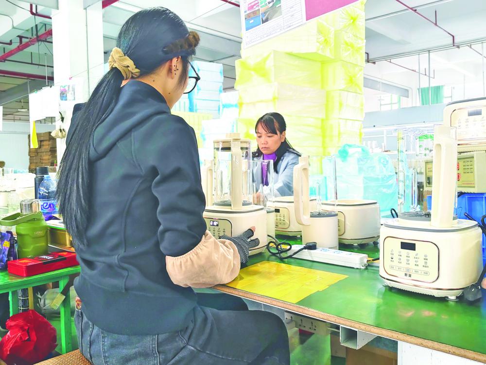 为保障产品质量,工人在打包发货前会对破壁机各项功能稳定性进行 再次检测。资料图片