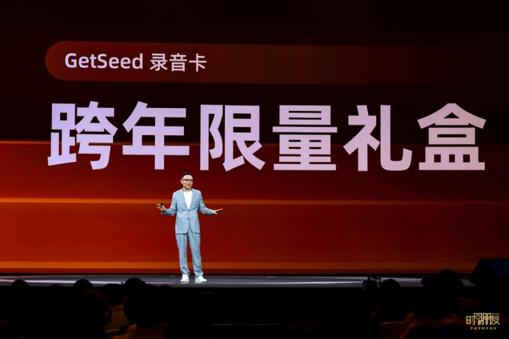 本届跨年演讲同步发布了多款知识产品:趋势洞察之作《预测之书:1000天后的世界》、年度报告系列《钱从哪里来》《变量》“来读书”年度知识书单,以及得到首款AI硬件产品——可便捷记录、智能整理的GetSeed录音卡,为这场思想盛宴提供了可延续至日常的学习工具与阅读指南。