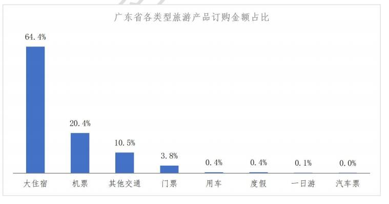 从产品类型来看,大住宿产品占据绝对主导地位,占比达80.2%,其他交通产品占比11.8%,门票产品占比4.5%,机票产品占比3.2%,显示出元旦假期广东省游客以住宿需求为核心,辅以短途交通和景区游览的出行特征。
