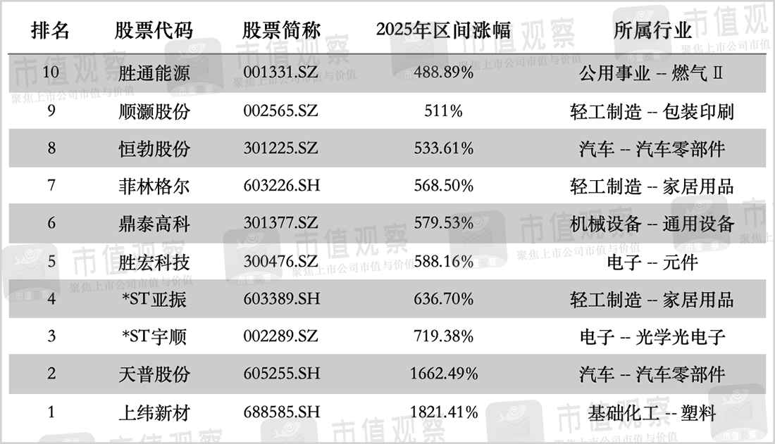上纬新材就是最佳答案,在人形机器人资产注入的预期之下,公司股票连续暴涨,年内飙升1821.41%,成为2025年当之无愧的“涨幅王”。