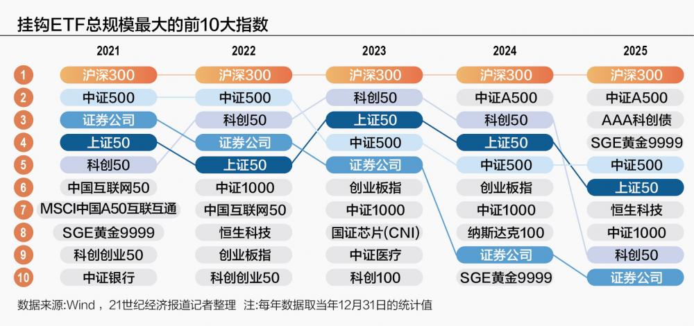 哪些指数是被动投资界的“顶流”?纵观过去五年,ETF市场呈现出“核心宽基指数地位稳固,细分赛道与创新主题轮动活跃”的显著特征,反映了投资者结构、市场热点和政策导向的深刻变化。