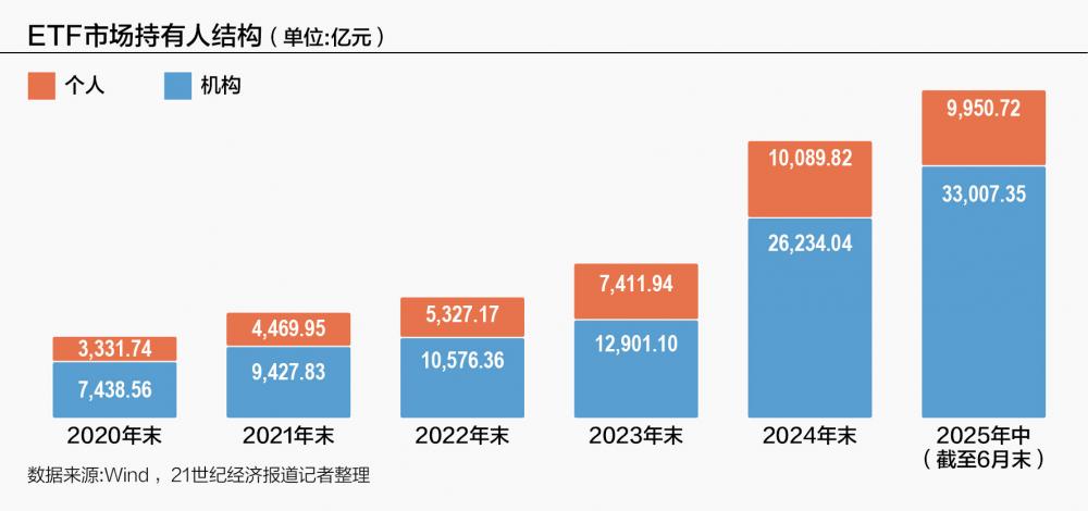 从2020年年末至2025年年中,中国ETF市场的持有人结构,最核心的特征是机构投资者主导地位的巩固。