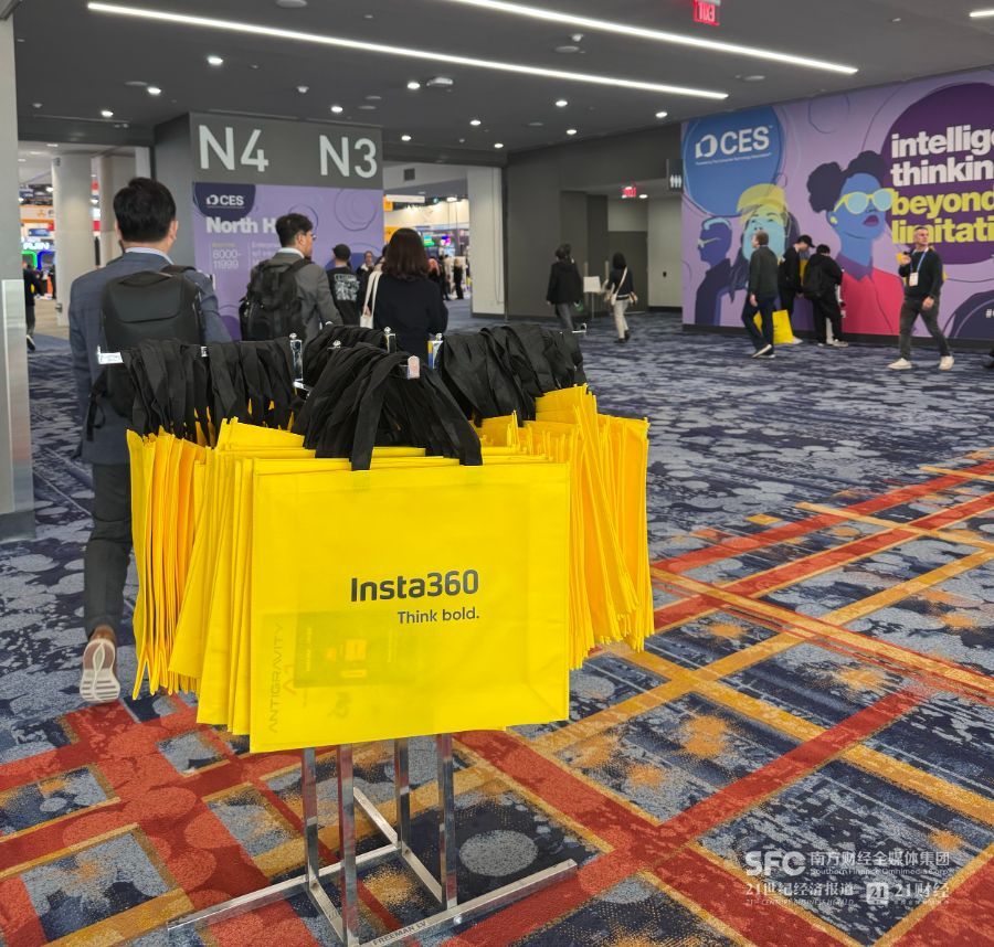 “我们今年做了一个有趣的创意,可以看到每个场馆都有影石的黄色袋子,以前这个手提袋是尼康在合作,今年公司实现了跟CES大会的合作,很开心作为中国的年轻科技品牌,受到越来越多的关注。”袁跃向记者表示。