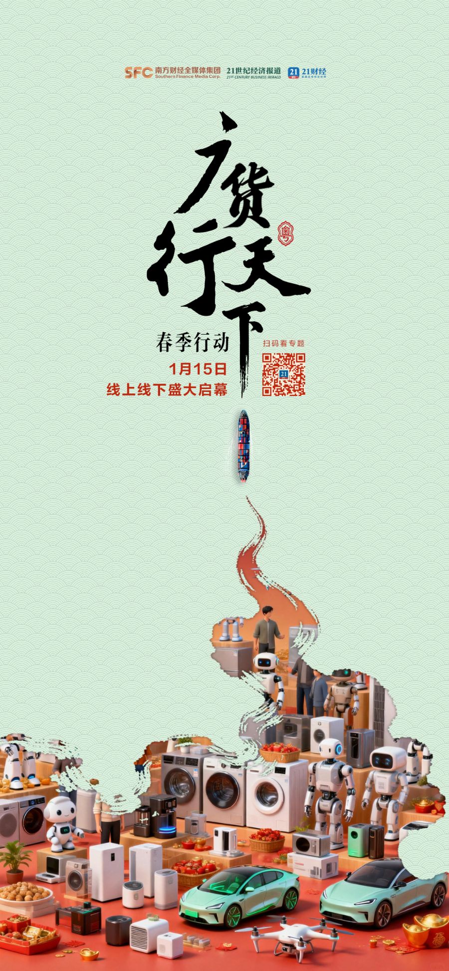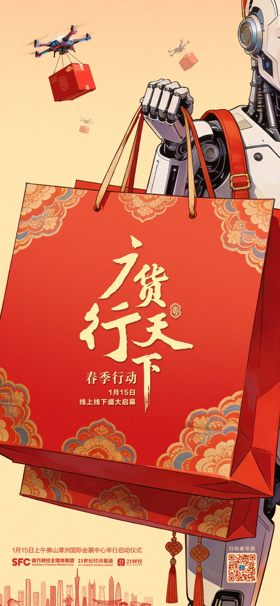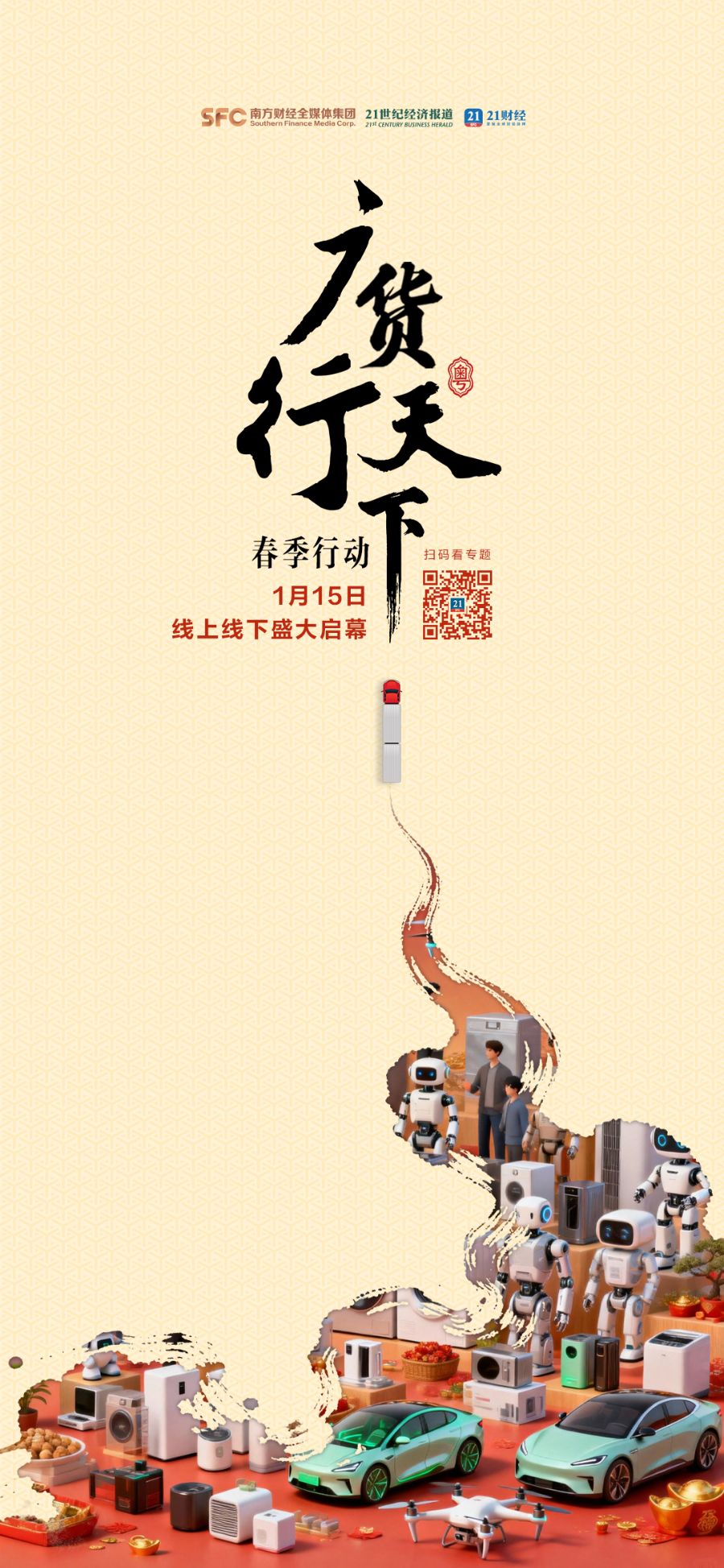 1月15日,“广货行天下”春季行动发布会暨家电专场促销活动将在佛山举行,正式拉开2026年度广东产品线上促销活动的序幕。其中,一季度将举办10场线下及2场线上共12场促销活动,并举办18场“广货行天下”春季行动系列配套活动,体现广东制造的多元魅力。