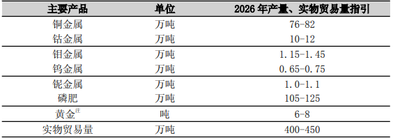 从15日更新的产量指引来看,2026年该公司将进一步挖掘现有项目的生产潜力,并计划将铜产量提升至76-82万吨,较2025年增长5万吨(中位数)左右。