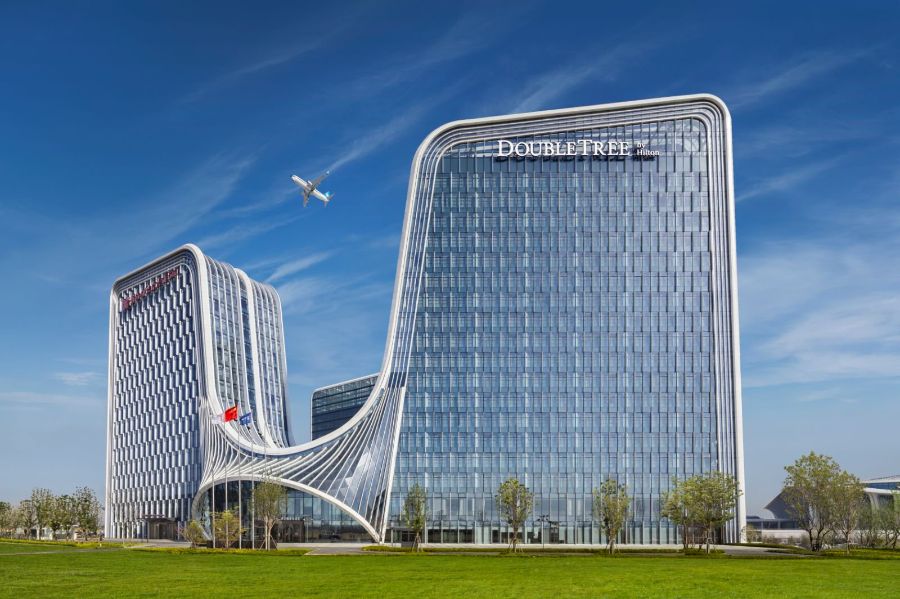 从新郑机场往东十公里,靠近郑州中原国际会展中心,新开业的郑州航空港希尔顿逸林酒店所在的双子塔建筑很是醒目。该酒店旁边就是去年11月开业的郑州航空港希尔顿花园酒店,形成双品牌运营格局。