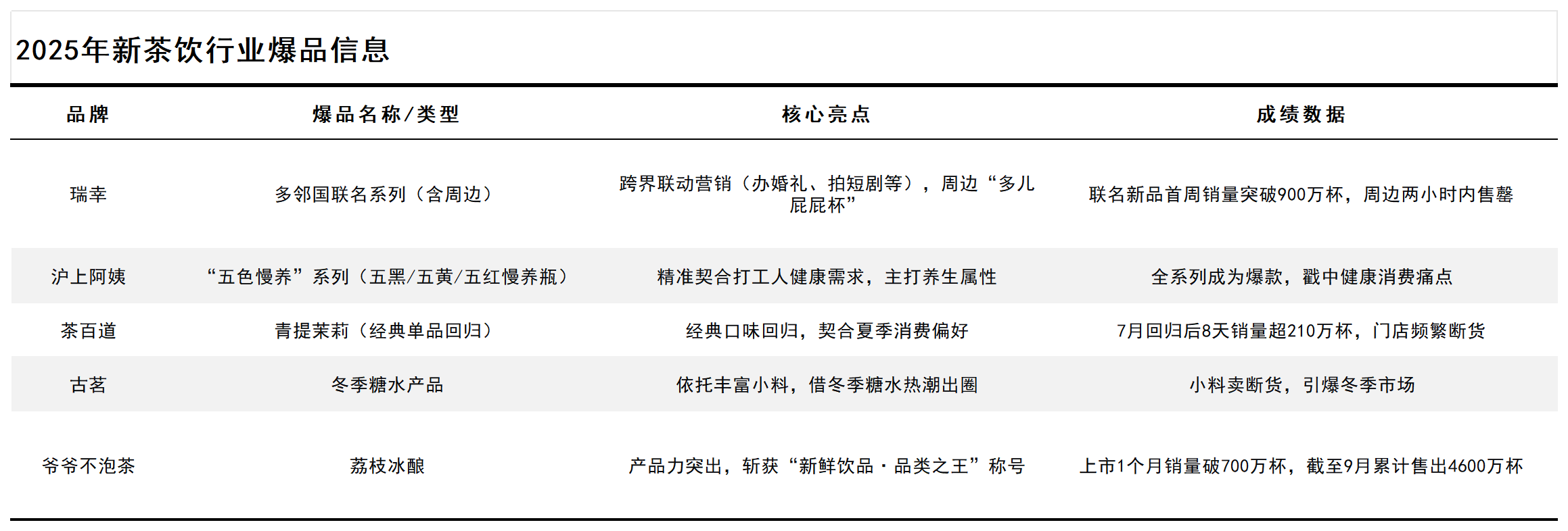 2025年新茶饮行业爆品频出,其成功逻辑高度聚焦,核心围绕“健康化、差异化、用户主导”三大方向展开: