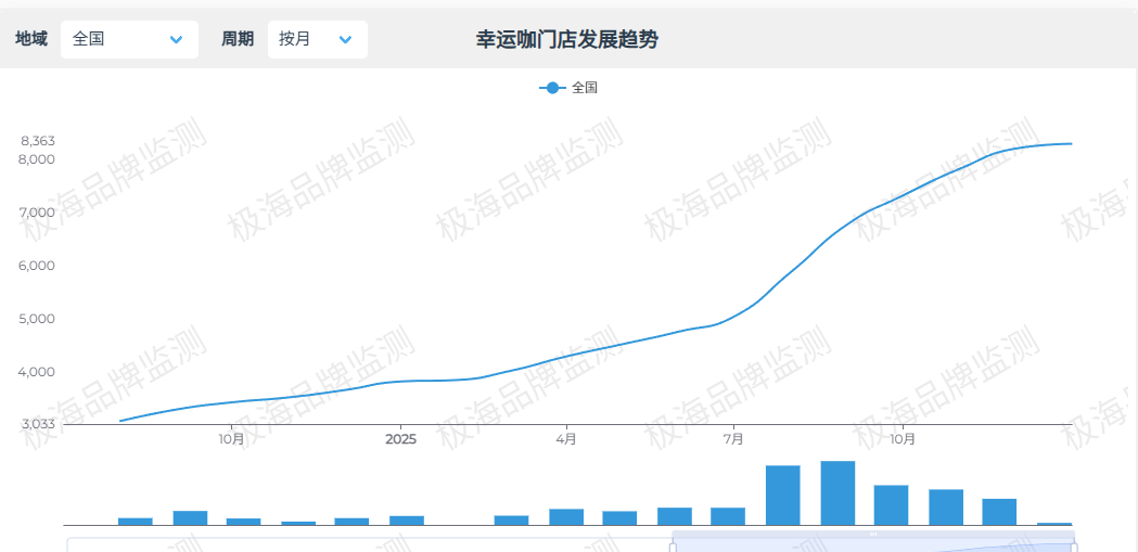 蜜雪冰城借助数字化冷链物流,在柠檬产区完成预处理后,可实现中国内地超90%县级行政区划12小时内送达,旗下幸运咖门店数量从2025年1月的3834家激增至2026年1月的8310家,稳步迈向万店目标。