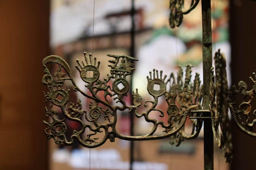 丝路上的文明交融,不仅体现在物质与技术的互通,更深入到文化的层面。在四川绵阳市出土的东汉铜摇钱树,便是丝路宗教思想交融的最佳例证。这种树枝上装饰铜钱的树状青铜器,在当时的四川、重庆、云南、贵州及陕西南部等地广为流行。本次展出的这株摇钱树上,寓意财源滚滚的铜钱与各类吉祥动物相伴,部分还装饰着细小的佛像,反映了佛教东传的历史轨迹。馆方工作人员向本报记者透露,此前展览中与观众见面的为文物仿制品,而今年1月至3月期间,这一见证着丝路精神的珍贵文物原件将正式亮相展厅,为观众提供近距离欣赏珍品的难得机会。