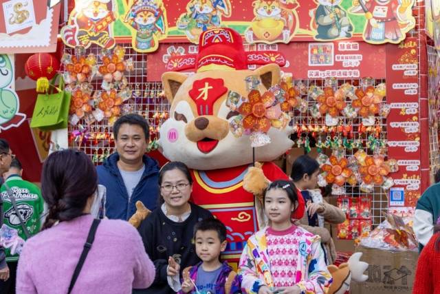 逛花街期间,市民游客不仅能与“喜洋洋和乐融融”近距离互动,还能选购系列文创产品,让新春氛围与体育热情双向奔赴。