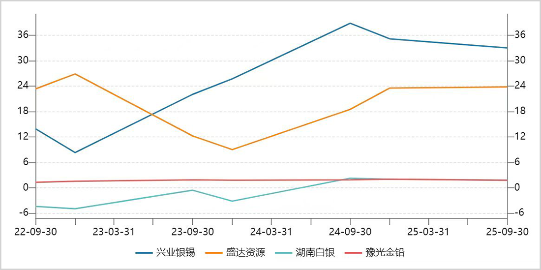 2025年前三季度,兴业银锡、盛达资源、湖南白银、豫光金铅净利率分别为33%、23.8%、1.8%、1.8%。显然,中游赚取的是加工费,属于低毛利制造业,生意模式远不如上游。