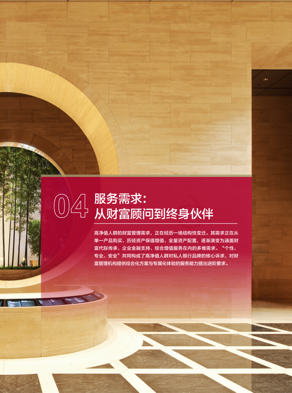 “资产配置建议需要足够专业、有深度,同时服务也需便捷。”一位资深客户经理道出了90后高净值人士的私人银行的新期待;而一位60后的实业家更看重长期关系:“我和我的银行客户经理合作超过十年了,他了解我的企业起伏和家庭情况,这种信任和稳定感无可替代。”
