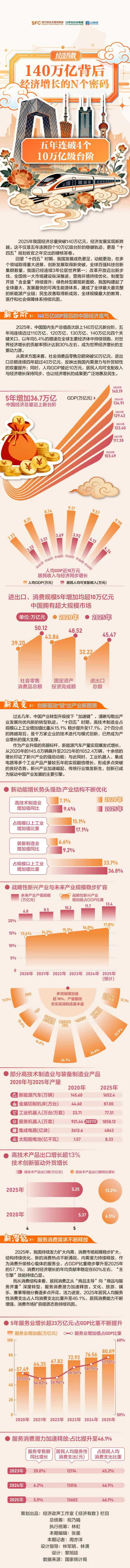 2025年,国民经济运行顶压前行、向新向优,高质量发展取得新成效,经济社会发展主要目标任务圆满实现,“十四五”胜利收官。初步核算,全年国内生产总值1401879亿元,按不变价格计算,比上年增长5.0%。